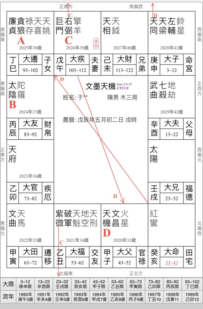 一路串起:財帛宮 → 子女宮 → 夫妻宮 → 官祿宮。